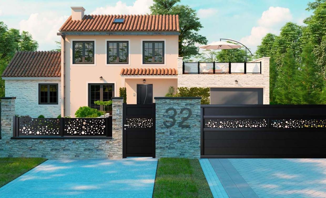 - Motorisation : Intégration de solutions de motorisation de portail pour un confort maximal, avec possibilité d’interphonie et visiophonie.